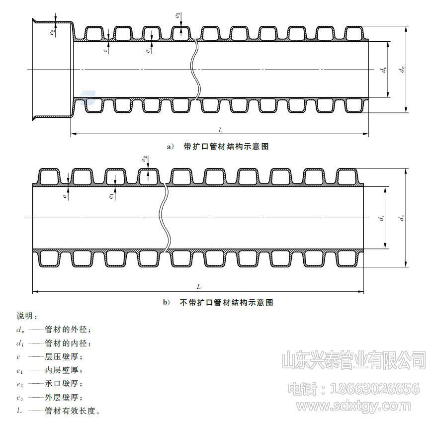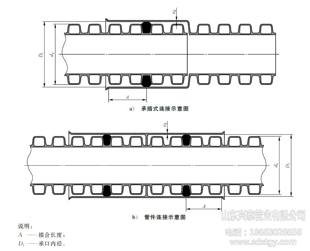 產(chǎn)品名稱:HDPE雙壁波紋管,聚乙烯雙壁波紋管 材料材質(zhì):PE/聚乙烯 執(zhí)行標(biāo)準(zhǔn):GB/T 19472.1 規(guī)格型號:DN/ID160-500mm(內(nèi)徑系列) 環(huán)剛度等級:SN4,SN8 外觀顏色:外觀內(nèi)壁均為黑色 產(chǎn)品長度:6米/支 連接方式:彈性密封圈 生產(chǎn)廠家:山東興泰管業(yè)有限公司 聯(lián)系電話:186 6302 6656 (高經(jīng)理) 適用溫度:長期使用溫度45℃以下的埋地排水、排污和通訊護套管用管材 產(chǎn)品介紹: HDPE雙壁波紋管,簡稱PE波紋管,80年代初在德國首先研制成功,是一種以聚乙烯PE為原材料,經(jīng)過擠出和特殊的成型工藝加工而成,內(nèi)壁光滑,外壁為封閉波紋型的一種新型輕質(zhì)管材,因采用了特殊的中空環(huán)形結(jié)構(gòu),具有優(yōu)異的環(huán)剛度和良好的強度與韌性。具有重量輕、耐高壓、韌性好、施工快、壽命長、摩擦系數(shù)小、連接方便可靠等特點。其優(yōu)異的管壁結(jié)構(gòu)設(shè)計,與其它結(jié)構(gòu)的管材相比,成本大大降低。雙壁波紋管已成為管道領(lǐng)域“以塑代鋼”的首選管材,它克服了混凝土管,鑄鐵管等安裝難度大、易銹蝕、水流阻力大、滋生細菌、壽命短的缺點。 PE雙壁波紋管是為了在節(jié)省原材料而不致使管材的環(huán)剛度下降的前提下,對管材截面進行優(yōu)化設(shè)計的一種內(nèi)壁光滑平整、外壁為梯形或弧形波紋狀、內(nèi)外壁波紋間為中空、采用擠出成型工藝制成的管材。因為其主要原材料為聚乙烯(PE),故簡稱為PE雙壁波紋管。 PE雙壁波紋管內(nèi)徑系列管材尺寸(單位:mm) 公稱內(nèi)徑 DN/ID 最小平均內(nèi)徑 dim,min 最小層壓壁厚 emin 最小內(nèi)層壁厚 e1,min 最小外層壁厚 e3,min 最小結(jié)合長度 Amin 200 195 1.5 1.1 0.9 54 300 294 2.0 1.7 1.0 64 400 392 2.5 2.3 1.8 85 500 490 3.0 3.0 2.1 96 PE雙壁波紋管的優(yōu)點 : 1、 產(chǎn)品結(jié)構(gòu)獨特,抗壓能力強,具有足夠安全可靠的環(huán)剛度; 2、 節(jié)約原材料,用同樣的原材料做同一外徑的管材時,波紋管比實壁管節(jié)省30%以上的原材料; 3、 重量輕,比重小于鑄鐵管和水泥管的50%; 4、 內(nèi)壁表面光滑,不易產(chǎn)生沉積,摩擦系數(shù)??; 5、 PE雙壁波紋管采用柔性密封圈連接,密封性能好,耐腐蝕,不結(jié)垢; 6、 具有良好的撓曲心梗,可適應(yīng)土壤的不均勻沉降; 7、 連接便捷、施工進度快,與傳統(tǒng)水泥管相比,采用PE波紋管可以提高3倍以上安裝進度,明顯降低施工費用,縮短施工周期; 8、 生產(chǎn)成本低,埋地使用可達50年以上,綜合經(jīng)濟性能優(yōu)越。 PE雙壁波紋管的物理力學(xué)性能 項目 要求 環(huán)剛度/(kN/m2) SN4 SN8 ≥4 ≥8 沖擊性能(TIR)/ % ≤10 環(huán)柔性 管材無破裂,兩壁無脫開,內(nèi)壁無反向彎曲 烘箱試驗 無分層,無開裂 密度/(kg/m3) ≤1180 氧化誘導(dǎo)時間(200℃)/min ≥20 蠕變比率 ≤4 PE雙壁波紋管的應(yīng)用領(lǐng)域 : 1、 市政工程,用于建筑物的地下排水管、排污管、輸水管、通風(fēng)管等; 2、 公寓、住宅小區(qū)、農(nóng)村地下埋設(shè)排水排污; 3、 電器電信工程,作為電力電纜、通訊光纜、通訊信號電纜的保護管; 4、 工業(yè),由于聚乙烯材料具有優(yōu)良的耐酸、堿及耐腐蝕能力,結(jié)構(gòu)壁管可用于化工、醫(yī)藥、環(huán)保等行業(yè)的給水和排水管道; 5、 農(nóng)業(yè)、園林工程,用于農(nóng)田、果園、茶園以及林帶排灌,可節(jié)水70%,節(jié)約用電13.9%,也可用于農(nóng)村灌溉; 6、 道路工程,可用作鐵路、高速公路、高爾夫球場、足球場等的滲、排水管; 7、 礦場,用作礦井的通風(fēng)、送風(fēng)管、排水管。 PE雙壁波紋管的連接: HDPE雙壁波紋管管道接頭應(yīng)采用彈性密封橡膠圈連接的承插式接口,橡膠圈接口應(yīng)遵守下列規(guī)定: 1、接口前,應(yīng)先檢查橡膠圈是否配套完好,確認(rèn)橡膠圈安放位置及插口的插入深度。 2、接口時,先將承口的內(nèi)壁清理干凈,并在承口內(nèi)壁及插口橡膠圈上涂潤滑劑,然后將承插口端面的中心軸線對齊。 3、接口方法應(yīng)按下述程序進行:DN400及其以下管道,先由一人用棉紗繩吊住被安裝管道的插口,另一人用長撬棒斜插入基礎(chǔ),并抵住該管端部中心位置的橫擋板,然后用力將該管緩緩插入待安裝HDPE雙壁波紋管管道的承口至預(yù)定位置;DN400以上管道可用兩臺手扳葫蘆將管節(jié)拉動就位。接口合攏時,管節(jié)兩側(cè)的手扳葫蘆應(yīng)同步拉動,使橡膠密封圈正確就位,不扭曲、不脫落。 PE雙壁波紋管貯存方法: HDPE雙壁波紋管應(yīng)貯存于常溫干燥庫中,不宜暴曬。 HDPE雙壁波紋管應(yīng)平放,堆碼高度不得超過4m。 HDPE雙壁波紋管不允許與有毒有害物質(zhì)混放,應(yīng)遠離熱源,在存放處應(yīng)設(shè)置醒目的禁火標(biāo)志。 存放期自生產(chǎn)之日起,一般不得超過2年。